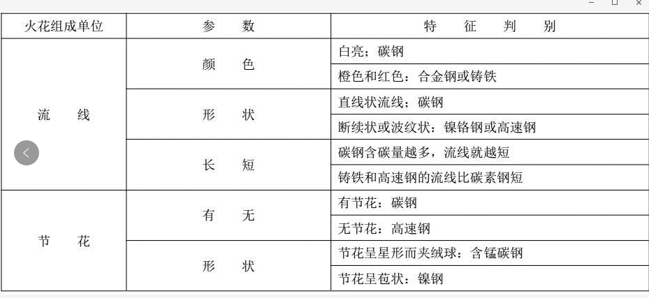 火花鉴别表